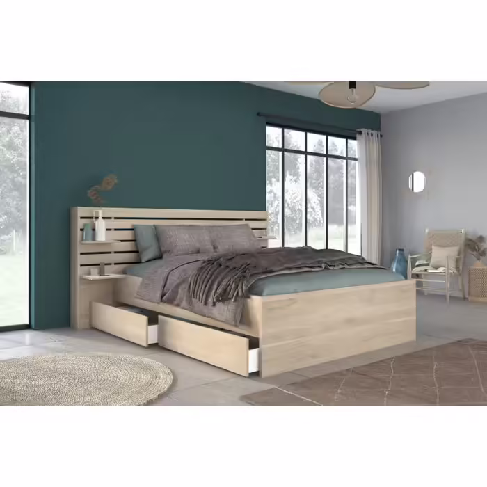 Lit + tiroir 160x200 cm ESCALE imitation chêne